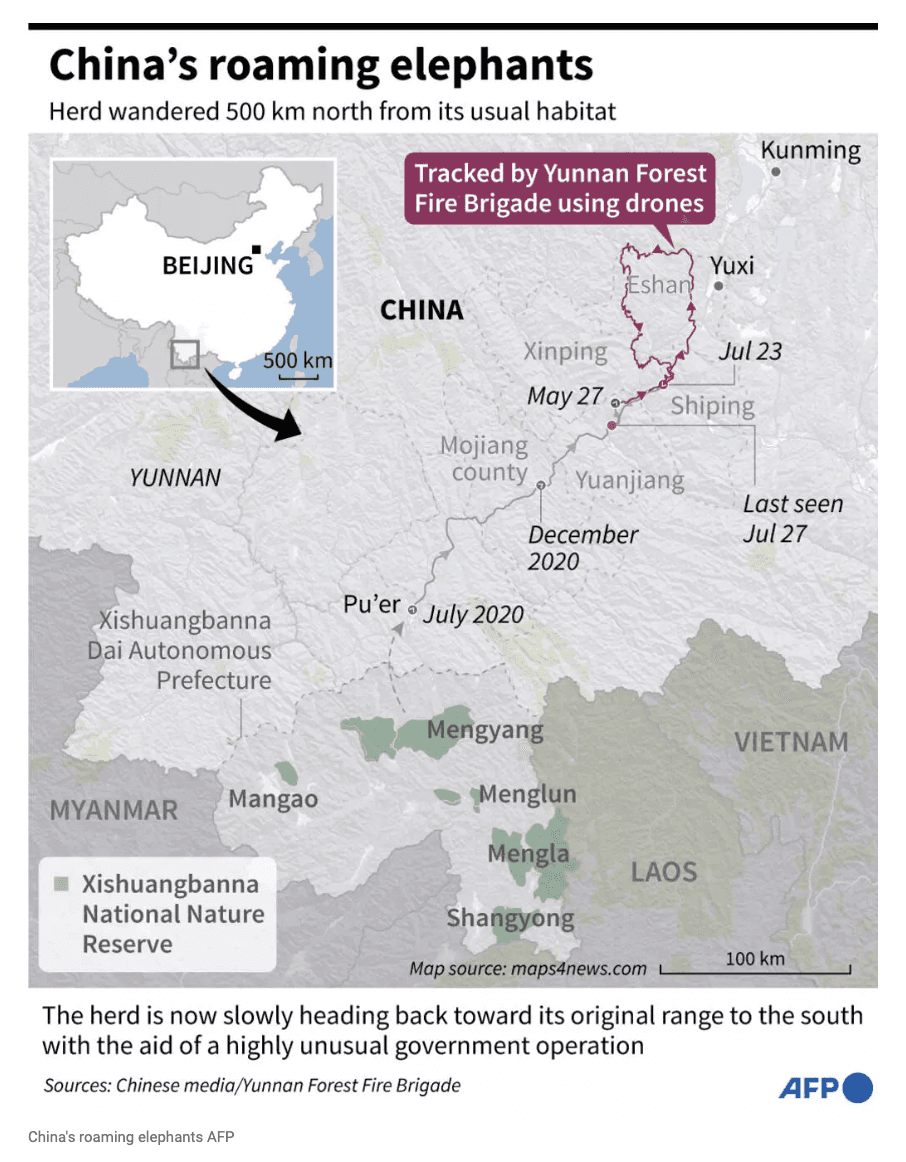 With drones and bananas, China coaxes wayward elephants home